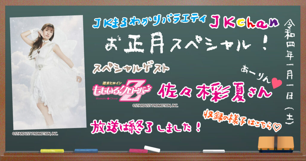 「JKchanお正月スペシャル」にももいろクローバーZの佐々木彩夏さん(あーりん)が登場しました!!